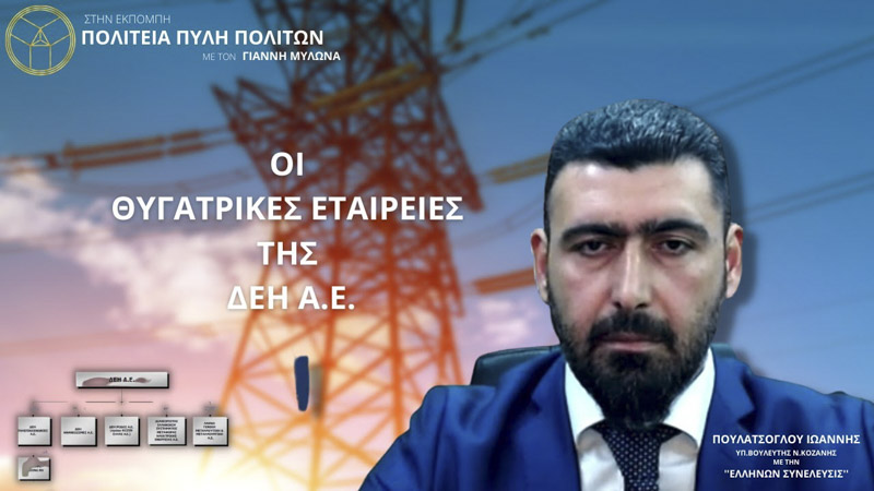 ΤΟ ΔΙΚΤΥΟ ΤΗΣ ΔΗΜΟΣΙΑΣ ΥΠΗΡΕΣΙΑΣ ΗΛΕΚΤΡΟΔΟΤΗΣΗΣ ΟΠΩΣ ΟΜΟΛΟΓΕΙ ΚΑΙ ΤΟ ΟΝΟΜΑ ΤΗΣ ΦΤΙΑΧΤΗΚΕ ΜΕ ΚΕΦΑΛΑΙΑ ΤΟΥ ΕΛΛΗΝΙΚΟΥ ΔΗΜΟΣΙΟΥ , ΔΗΛΑΔΗ ΜΕ ΧΡΗΜΑΤΑ ΠΟΥ ΠΛΗΡΩΣΑΝ ΑΔΡΑ ΟΛΟΙ ΟΙ ΕΛΛΗΝΕΣ ΦΟΡΟΛΟΓΟΥΜΕΝΟΙ ΠΟΛΙΤΕΣ . ΠΑΡΟΛΟ ΠΟΥ ΤΟ ΗΛΕΚΤΡΙΚΟ ΡΕΥΜΑ ΘΕΩΡΕΙΤΑΙ ΚΟΙΝΩΝΙΚΟ ΑΓΑΘΟ ΚΑΙ ΤΟ ΔΙΚΤΥΟ ΠΑΡΟΧΗΣ ΤΟΥ ΑΝΗΚΕΙ ΣΤΟ ΔΗΜΟΣΙΟ , ΟΙ ΕΚΑΣΤΟΤΕ ΚΥΒΕΡΝΗΣΕΙΣ ΜΕ ΔΟΛΙΕΣ ΝΟΜΟΛΟΓΙΕΣ ΚΑΙ ΕΝ ΑΓΝΟΙΑ ΤΩΝ ΠΟΛΙΤΩΝ ΚΟΜΜΑΤΙΑΣΑΝ ΤΗΝ ΔΕΗ ΚΑΙ ΕΚΠΟΙΗΣΑΝ ΚΑΘΕ ΤΜΗΜΑ ΤΗΣ ΣΕ ΙΔΙΩΤΕΣ. ΣΦΡΑΓΙΣΤΗΚΑΝ ΟΔΥΝΗΡΕΣ ΣΥΜΦΩΝΙΕΣ ΜΕ ΤΙΣ ΟΠΟΙΕΣ ΙΔΙΩΤΙΚΕΣ ΕΤΑΙΡΕΙΕΣ ΧΡΗΜΑΤΟΔΟΤΗΘΗΚΑΝ ΣΤΗ ΟΥΣΙΑ ΑΠΟ ΤΟ ΔΗΜΟΣΙΟ ΓΙΑ ΝΑ ΕΚΜΕΤΑΛΛΕΥΟΝΤΑΙ ΓΙΑ ΙΔΙΟΝ ΟΦΕΛΟΣ ΤΙΣ ΚΑΤΑΣΚΕΥΕΣ ΚΑΙ ΕΓΚΑΤΑΣΤΑΣΕΙΣ ΤΩΝ ΕΝΕΡΓΕΙΑΚΩΝ ΕΡΓΩΝ ΜΕ ΑΝΥΠΟΛΟΓΙΣΤΟ ΑΝΤΙΚΤΥΠΟ ΓΙΑ ΤΟΥΣ ΚΑΤΑΝΑΛΩΤΕΣ ΚΑΙ ΤΟ ΔΗΜΟΣΙΟ ΣΥΜΦΕΡΟΝ ΤΟ ΣΧΕΔΙΟ ΕΜΠΟΡΕΥΜΑΤΟΠΟΙΗΣΗΣ ΤΟΥ ΗΛΕΚΤΡΙΚΟΥ ΡΕΥΜΑΤΟΣ ΚΑΙ ΤΟΥ ΞΕΠΟΥΛΗΜΑΤΟΣ ΤΗΣ ΔΕΗ ΑΠΟΚΑΛΥΠΤΕΙ Ο ΚΥΡΙΟΣ ΠΟΥΛΑΤΣΟΓΛΟΥ ΙΩΑΝΝΗΣ, ΥΠΟΨΗΦΙΟΣ ΒΟΥΛΕΥΤΗΣ ΣΤΟ ΝΟΜΟ ΚΟΖΑΝΗΣ ΜΕ ΤΟΝ ΠΟΛΙΤΙΚΟ ΦΟΡΕΑ ΄΄ΕΛΛΗΝΩΝ ΣΥΝΕΛΕΥΣΙΣ’’ , ΣΤΗΝ ΕΚΠΟΜΠΗ ‘’ΠΟΛΙΤΕΙΑ ΠΥΛΗ ΠΟΛΙΤΩΝ’’ ΜΕ ΤΟΝ ΓΙΑΝΝΗ ΜΥΛΩΝΑ.